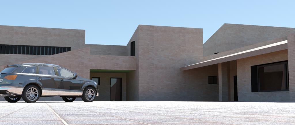 Hola qué tal, si esta es tu primera infografía muy bien, llevas muy buen camino, yo personalmente no utilizo Mental Ray, y en ese tema poco te puedo aconsejar la verdad, así de primeras te diría que el césped es totalmente plano lo que le quita realismo, el coche canta un poco, le veo demasiado claro, y el ladrillo cara vista yo personalmente le daría algo más de relieve, además de trabajar algo la reflexión en los cristales, que refleje algo sabes, pero vamos que poco a poco, yo tampoco soy un experto, por eso espero que te sirva mi humilde opinión, un saludo.