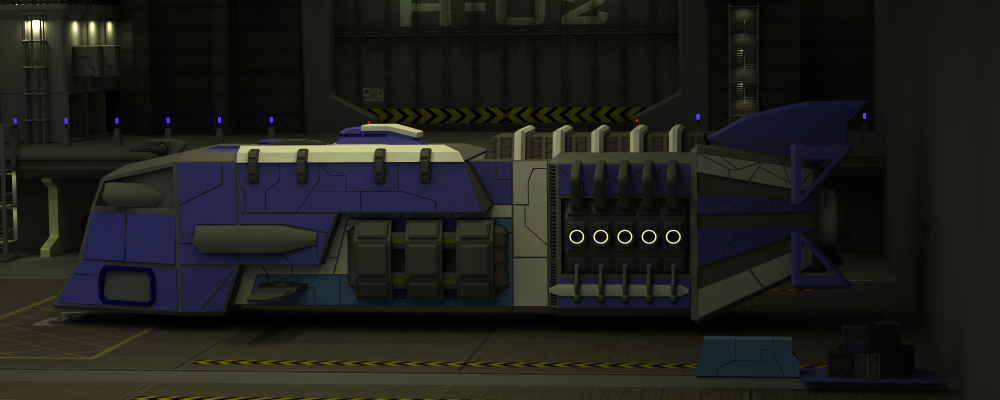 Subo una actualización con la nave que estoy modelando para el interior del hangar.