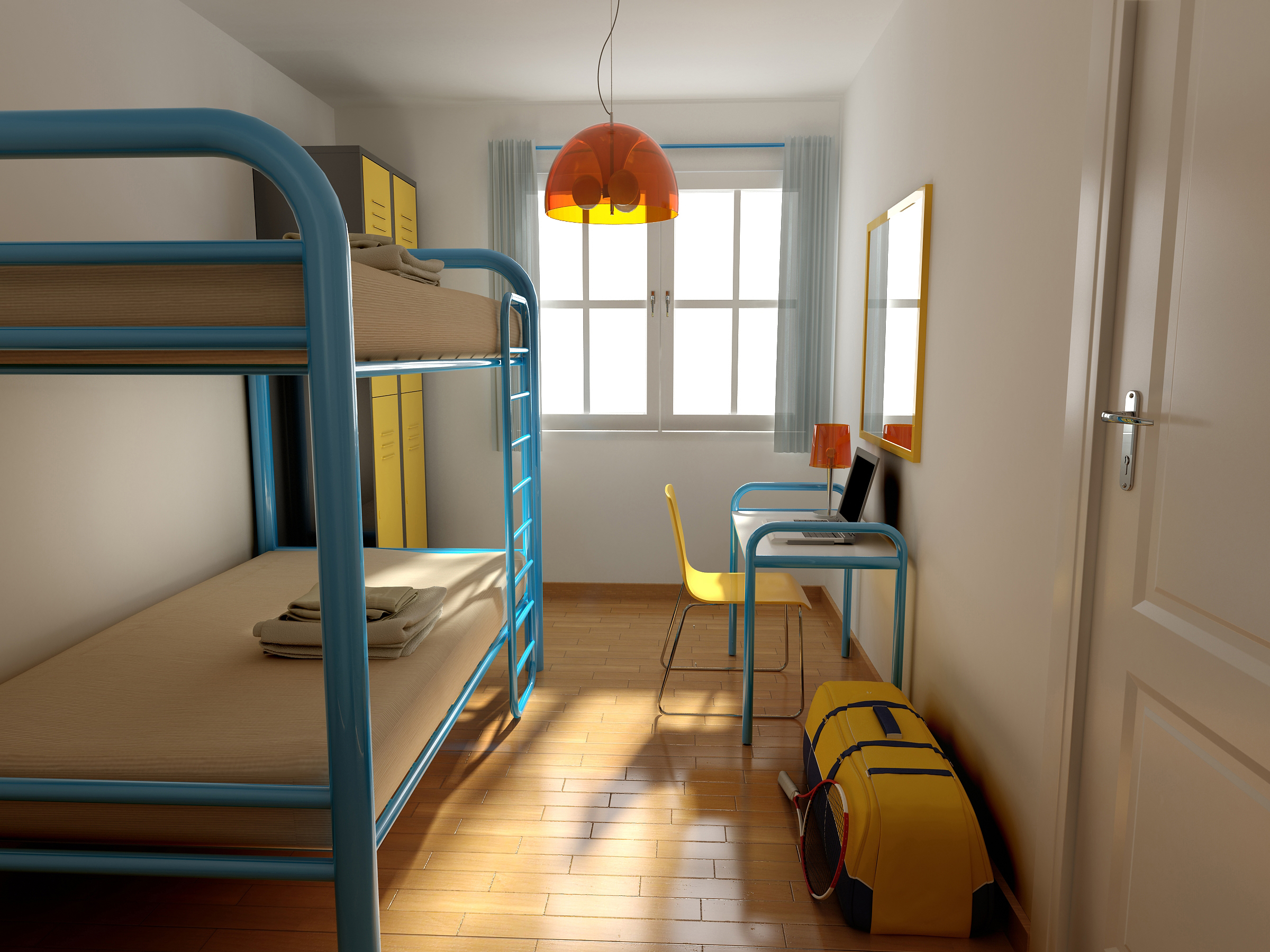Hola. Lindo trabajo. No obstante. Colchón a ajustar, lámpara de mesa flotando, en fin, todos los comentarios anteriores totalmente de acuerdo, y te agregaría que no comprendo bien lo del cierre de la ventana, arriba está sumamente pegada y más abajo se nota cómo una apertura o brillo que no concuerda.