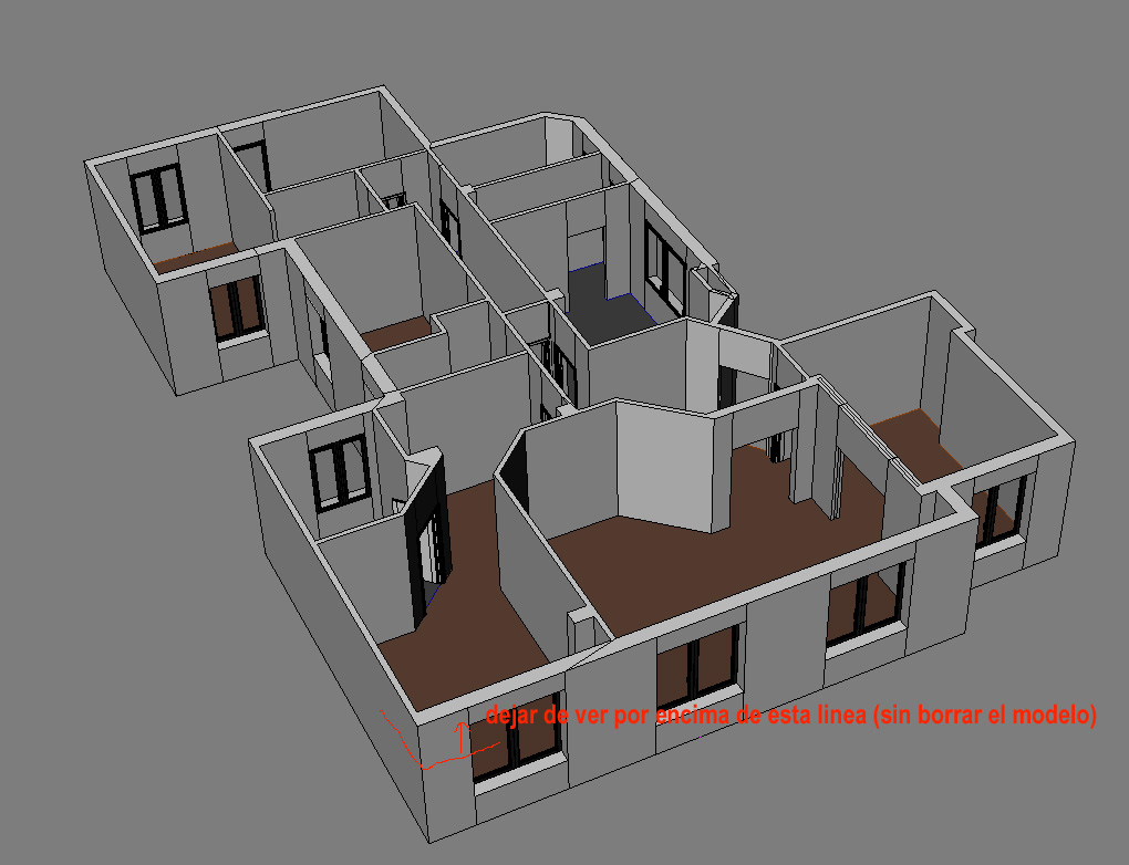 Hola. Quizás el título del tema no es el más apropiado, pero es que, no tengo muy claro como llamarlo. El tema es que estoy haciendo el diseño de euna vivienda para reformarsela a un cliente, la idea es hacer unas vistas en perspectiva isométrica del conjunto de la casa (como las de las inmobiliarias) con muebles y todo. Y si me queda tiempo unas vistas interiores de las estancias. El problema viene con la visualización en los viewport de los tabiques, querría que salieran a altura de 2m para que no sean demasiado altos y se vea algo, pero para las vistas interiores mejor hasta los 3m reales. Una opción sería crearlos hasta los 3m y después recortarlos con un plano de recorte, pero supone un curro bastante grande sobre todo cuando tenga que recortar las carpinterías de las ventanas.