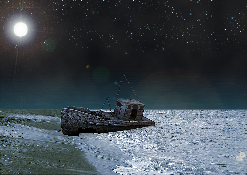 Barco abandonado de noche