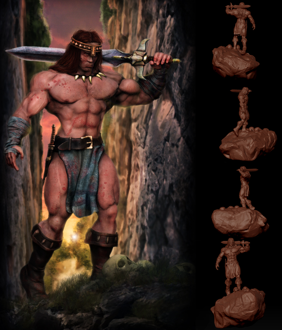 Hola un saludo a todos, aquí os dejo mi versión de Conan para crearlo me he basado en el cómic Conan the cimmerian, para crearlo he utilizado ZBrush para el modelado, texturizado del personaje y Adobe Photoshop para darle el resultado final, espero que os guste.