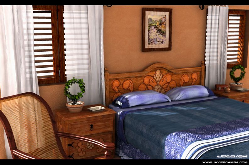 Si esa habitación tiene aire acondicionado, me la quedo para este verano, para echar unas buenas, siestas. Posdata: una escena muy cálida y agradable a la vista, estupendo trabajo, me encanta la iluminación que le has dado. Saludos.