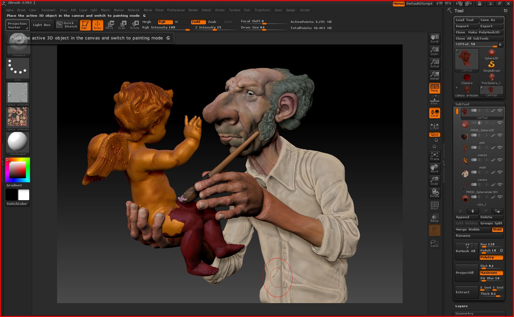Excelente trabajo, solo una cosa la pintura en la punta del pincel debería ser dorado no rosada ¿bueno digo yo amenos que le este pintando otra cosa? Saludos excelente trabajo.