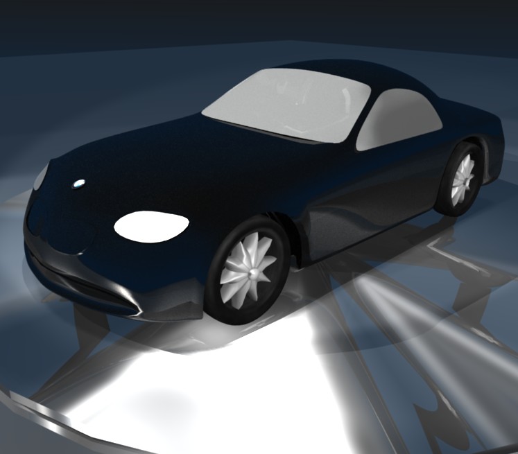 Por otro lado, la iluminación, hay demasiada diferencia en diferentes partes del auto, fíjate si puedes emparejarla más, con una puesta clásica de tres luces, si quieres resaltar lumínicamente el auto, usa spots, pero asegúrate que cubran la total superficie del auto, dejando el resto oscuro.