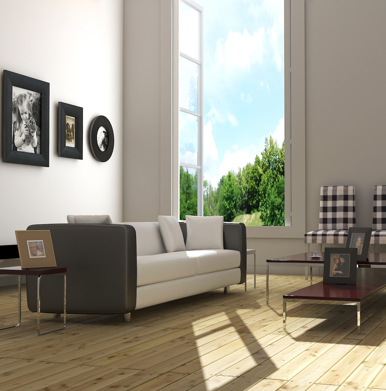 Por otro lado, y esto ya es opinión personal, veo que has abusado a lo mejor un poco en el tema de los cuadros: no veo que en la mesa baja central del salón se coloco un cuadro de fotografía y además en esa posición, al contrario que la que queda detrás que sí queda bien. Por otro lado, el cuadro que queda sobre la mesita alta junto al sofá lo veo de dimensiones demasiado elevadas para una mesa tan pequeña. Un saludo.