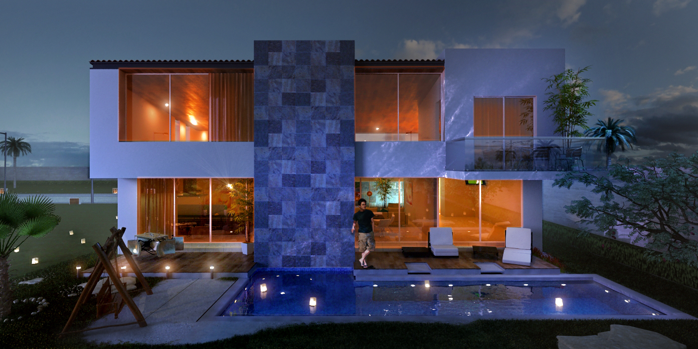 Que tal Mario. Hay algunos brillos raros que se ven, tal vez se apor tus experimentos con las cáusticas, cosa que es desconocida para mí. En lo personal la textura de pizarra o piedra del muro de en medio se ve algo rara o pesada, y como que le falta más trabajo a las de los pisos y la barda perimetral. La camioneta Mazda le quita realismo, ese modelo está un poco Low polygon o algo parecido. Se ven mejor logradas las nocturnas, tal sea verdad lo que te comenta marione, ahí se esconden un poco más esas imperfecciones. Si te fijas en la fachada principal de día se ve un resplandor también raro sobre el volado, como si tuviera una luz muy de cerca a la fachada. También algunos colores se ven muy saturados, tal es el caso del mosaico de la alberca en la versión de día. Como que en estos renders te metiste más en descubrir nuevas cosas con las cáusticas, que descuidaste otras.