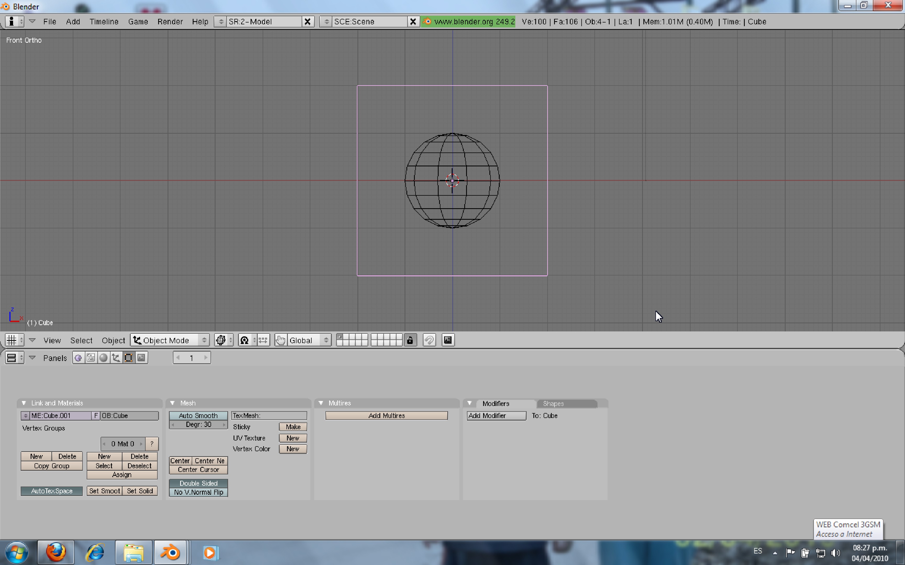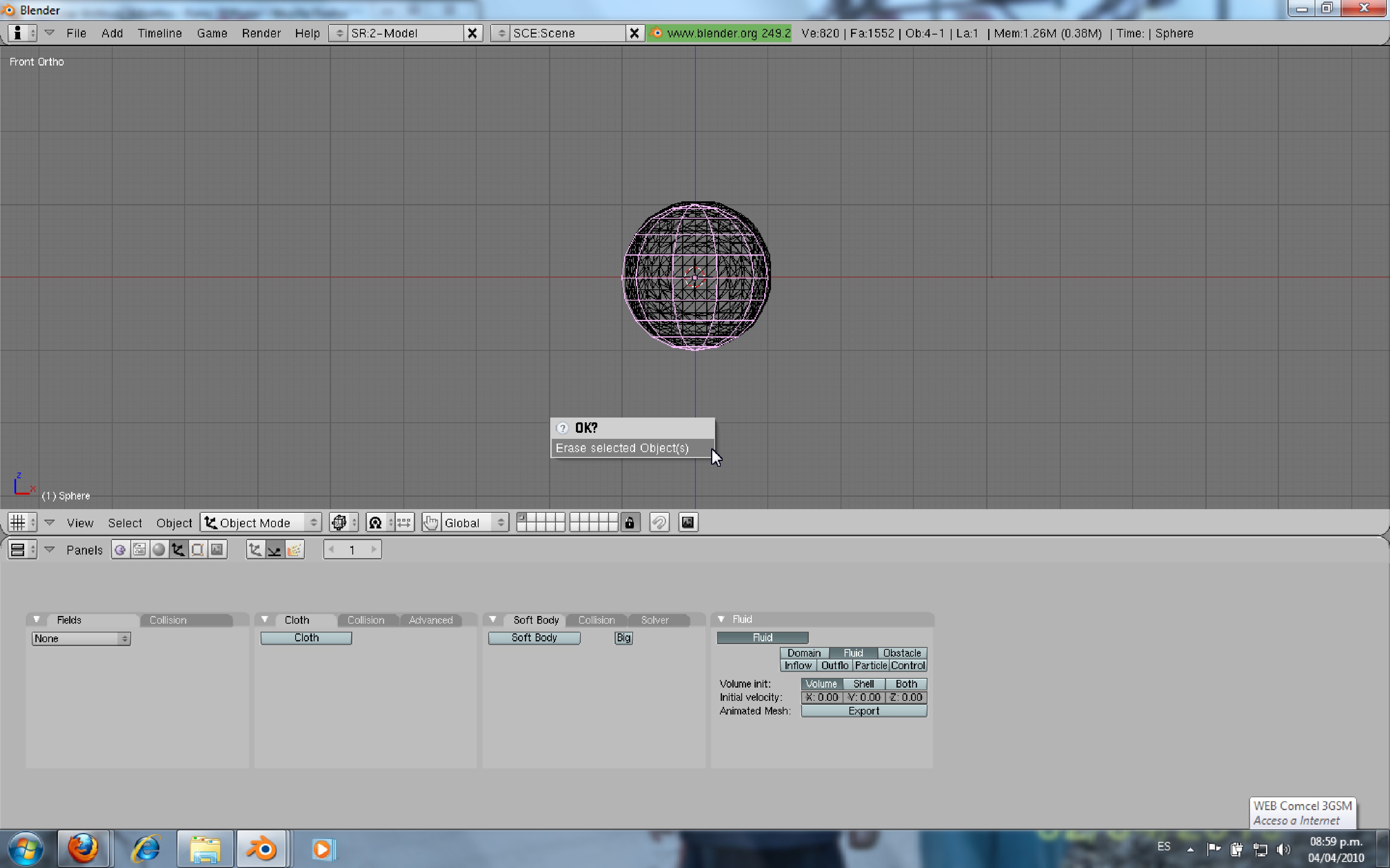 Si lo desean pueden seleccionar la UV sphere y oprimir la tecla X para borrarla, ya que no se necesitara más.