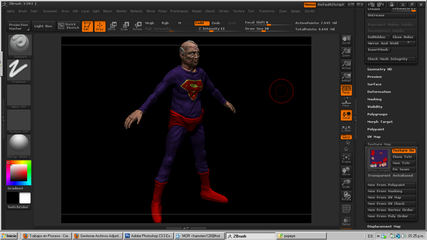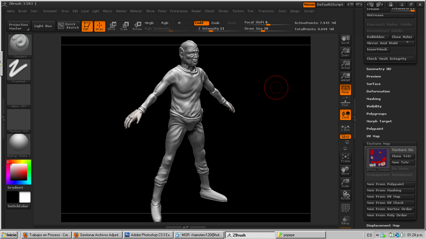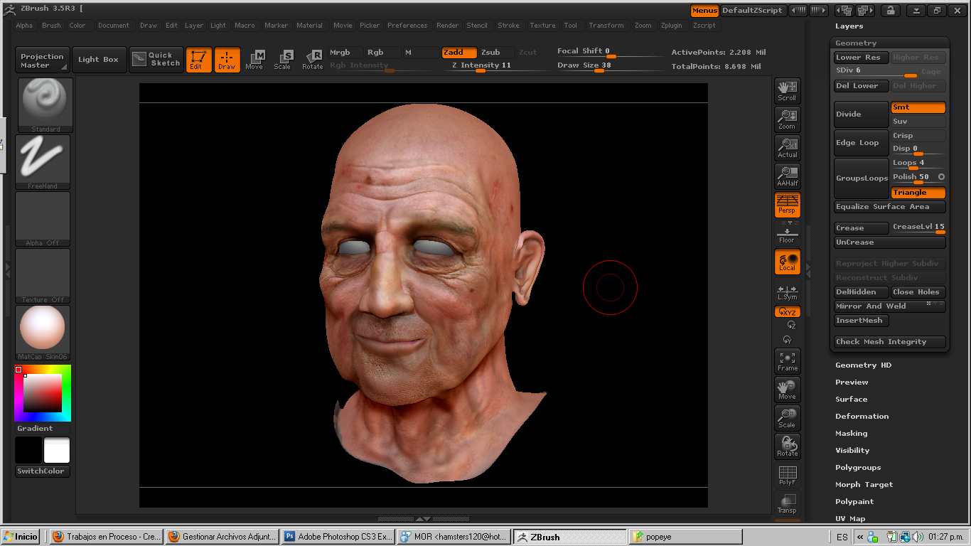 Está chulo, la imagen de la cara del ZBrush me recuerda a Jhon lok de la serie lost un poco más envejecido.