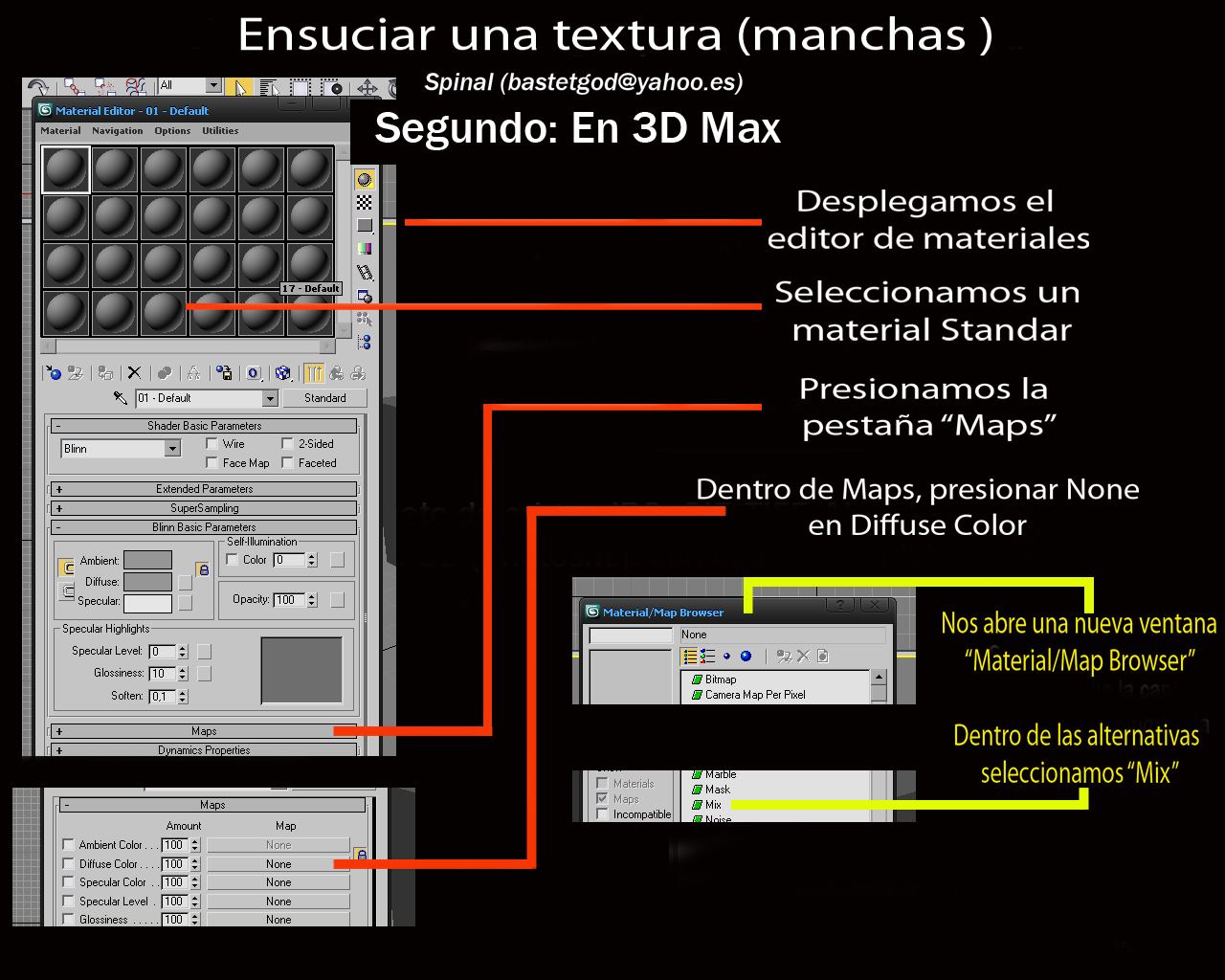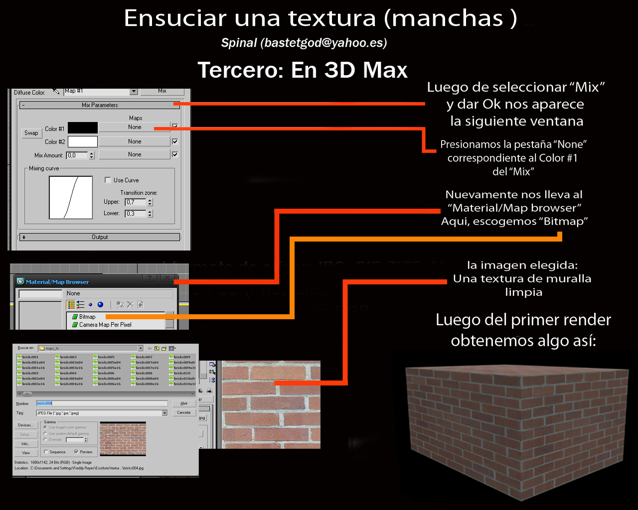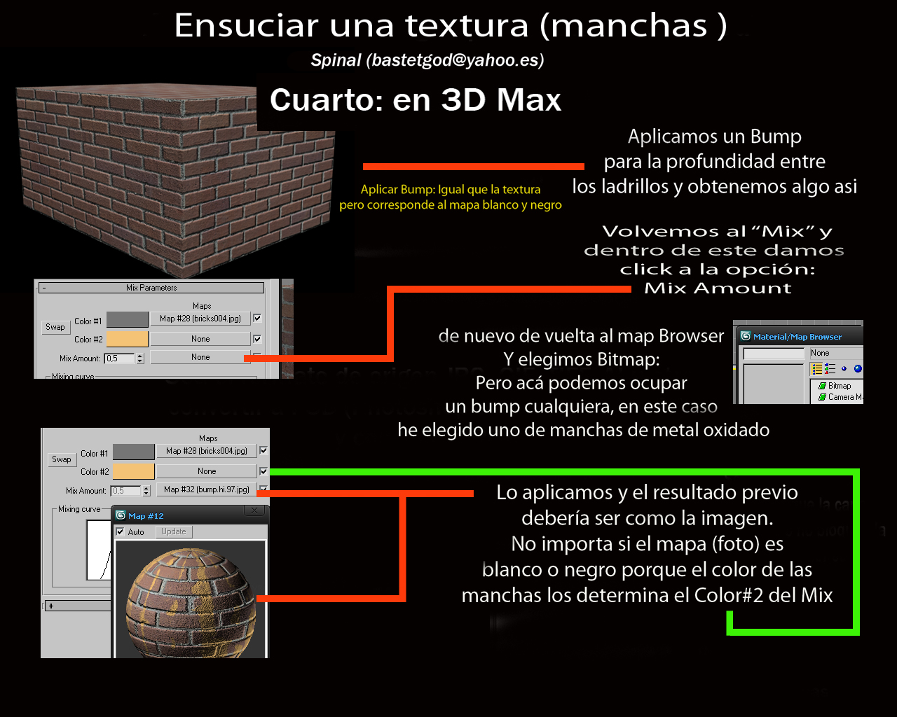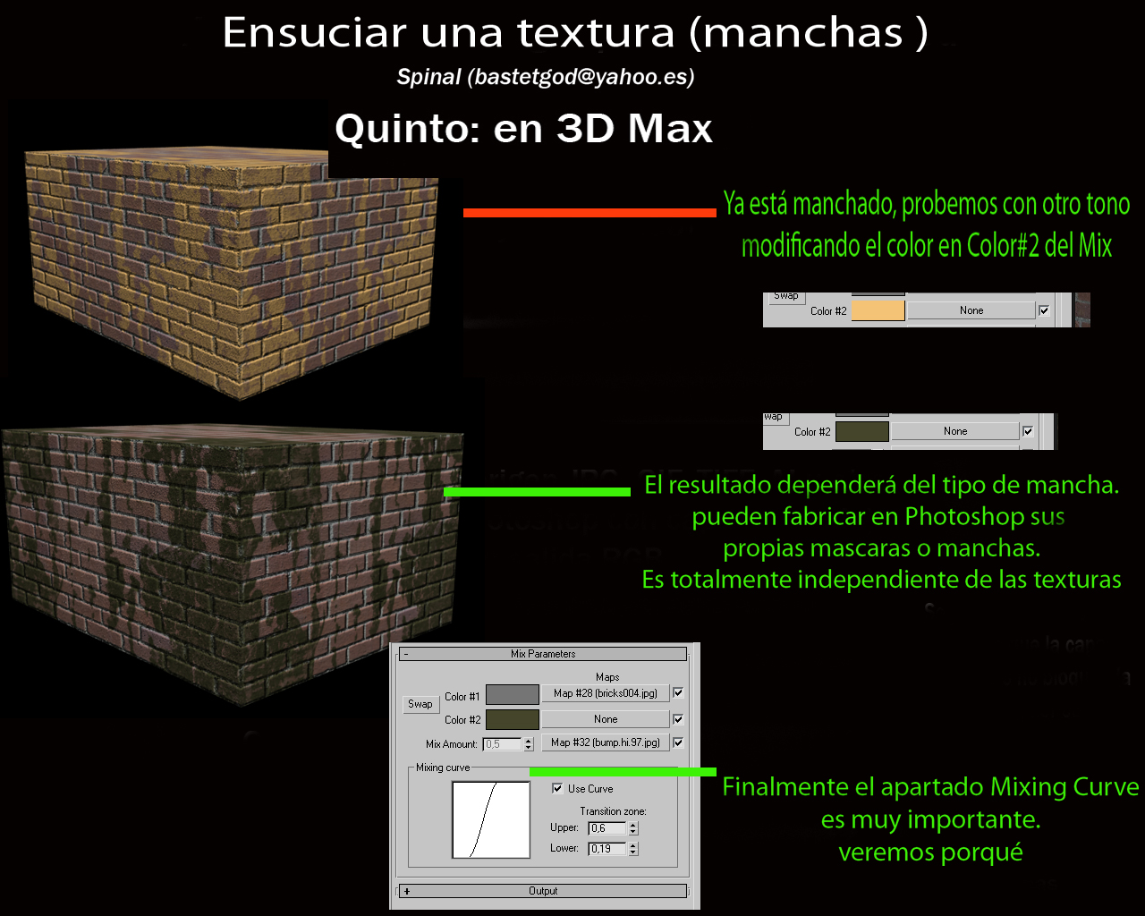 Hola gente: Aquí está una forma de ensuciar una textura. Espero que sirva de contribución y bueno, si alguien quiere proponer, criticar o algo, todo bienvenido.