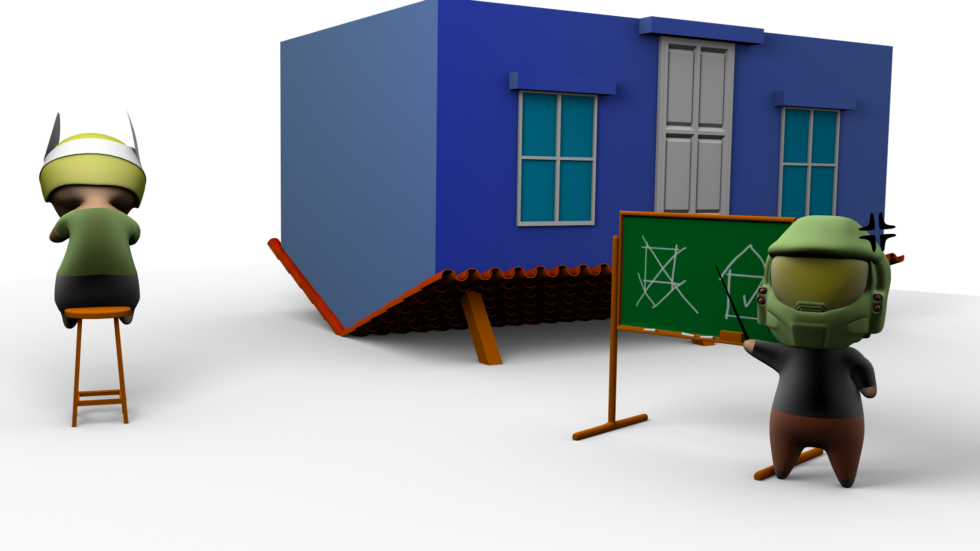Sé que no es la gran cosa ni mucho menos, pero tenía que sacarme está escena de la cabeza y bueno pues haciendo honor a la frase hay va mi casa empezada por el tejado (irónicamente y sin premeditación empecé a modelar la supercasa por el tejado, caí en cuenta hasta después).
