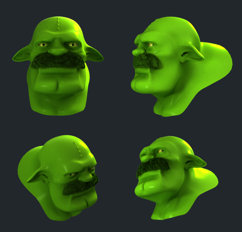 Está todo muy verde saturado, quizás si el bigote y otros detalles no sean tan verdes tu personaje luzca mejor, también estaría genial si le hicieras un entorno más trabajado.