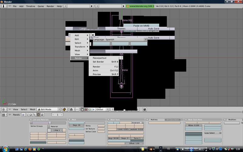 Pero me va fatal, hay veces que no se ven los textos de los botones, cuando abro menús se queda detrás un rastro negro, al renderizar tango que dar yo click en la ventana de render o si no sale, etc.