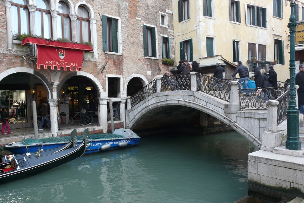 Venecia me decepcionó un poco. Realmente uno no pasea por la orilla de los canales. Más bien cruza barios enteros, salpicados de algunos puentes.