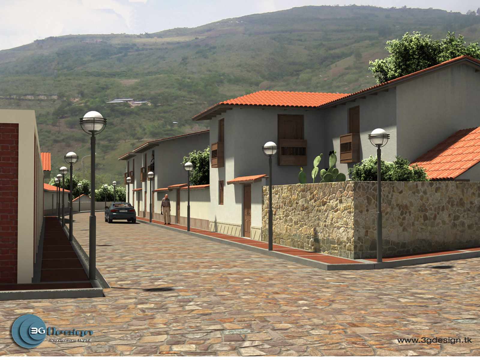 Consejos: las casa ganarían con canalones y desagües, y cables del tendido eléctrico, y telefónico. Alguna chimenea, alguna antena, parabólica. Algún pájaro o alguna nube entre el 3d y el fondo.