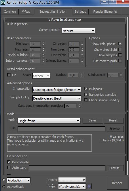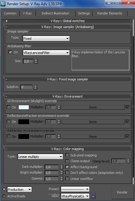 Saludos javiergn. A comentar. Revisa en las tomas interiores necesitas un background, en esos casos te puede servir crear un plane+blend+Vraylight MTL con una imagen que te servirá de fondo: ciudad, vegetación, la que mejor se adapte a tu toma, esto te ayuda a completar tu imagen para que no se vea solo gris al fondo.