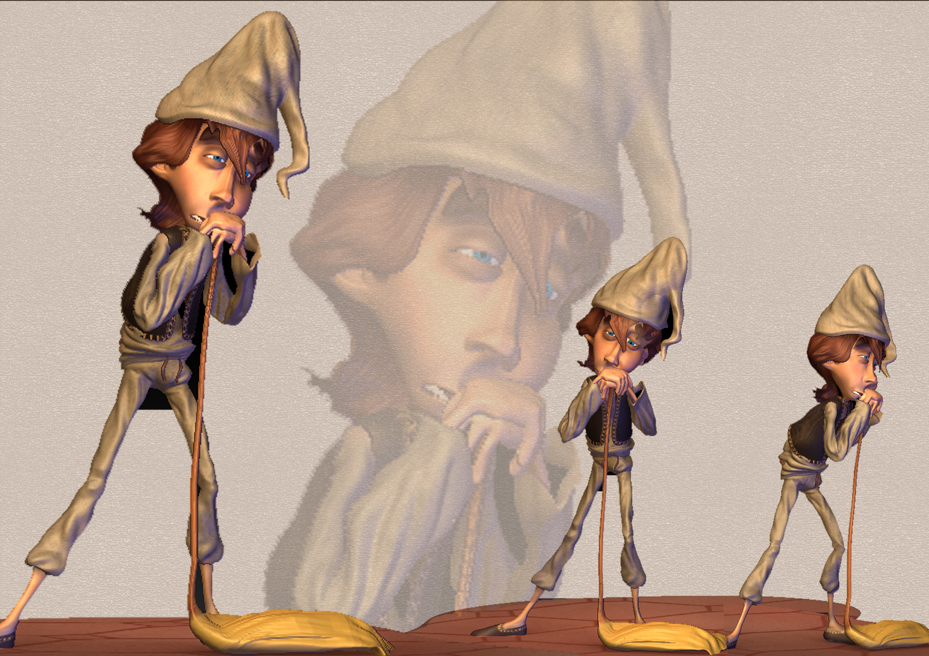 Buenas. Menudo curro, te habrá llevado la vida, ya los tienes riggeados? Me gusta mucho el estilo de todos los personajes, algo que no me gusta son las narices, pero es una cuestión de gustos, son demasiado angulosas y en mi opinión solo queda bien en el docttore, me gustan mucho las ropas de este ultimo, y la escoba no te parece un saco más que una escoba?
