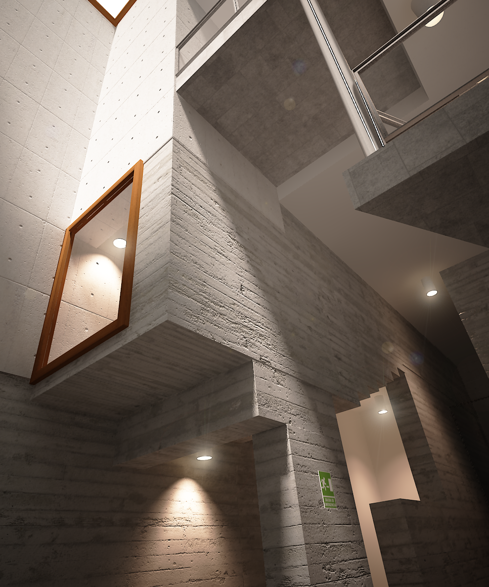 Hola compañero, muy guapa tu imagen, me gusta mucho la textura del hormigón, no tanto la de los perfiles metálicos y mucho menos las ventanas, no parece real. Un saludo.