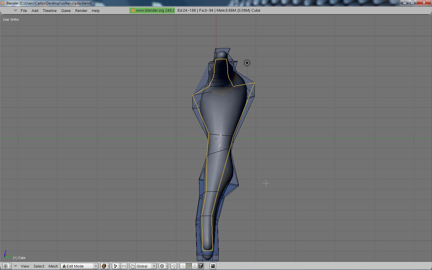 Ingresamos a modo edición con la tecla tab y nos aseguramos que estemos en modo edge o alambres.