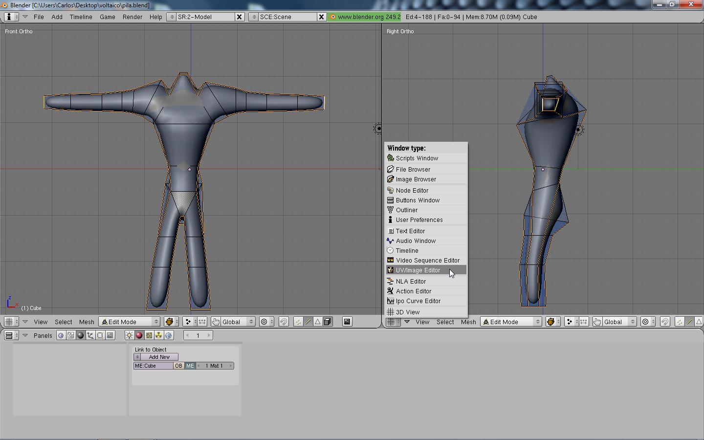 Finalizados estos pasos activamos la ventana UV/Image Editor.