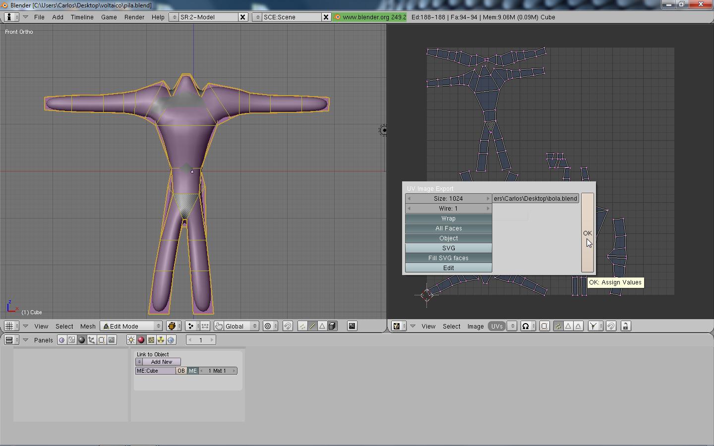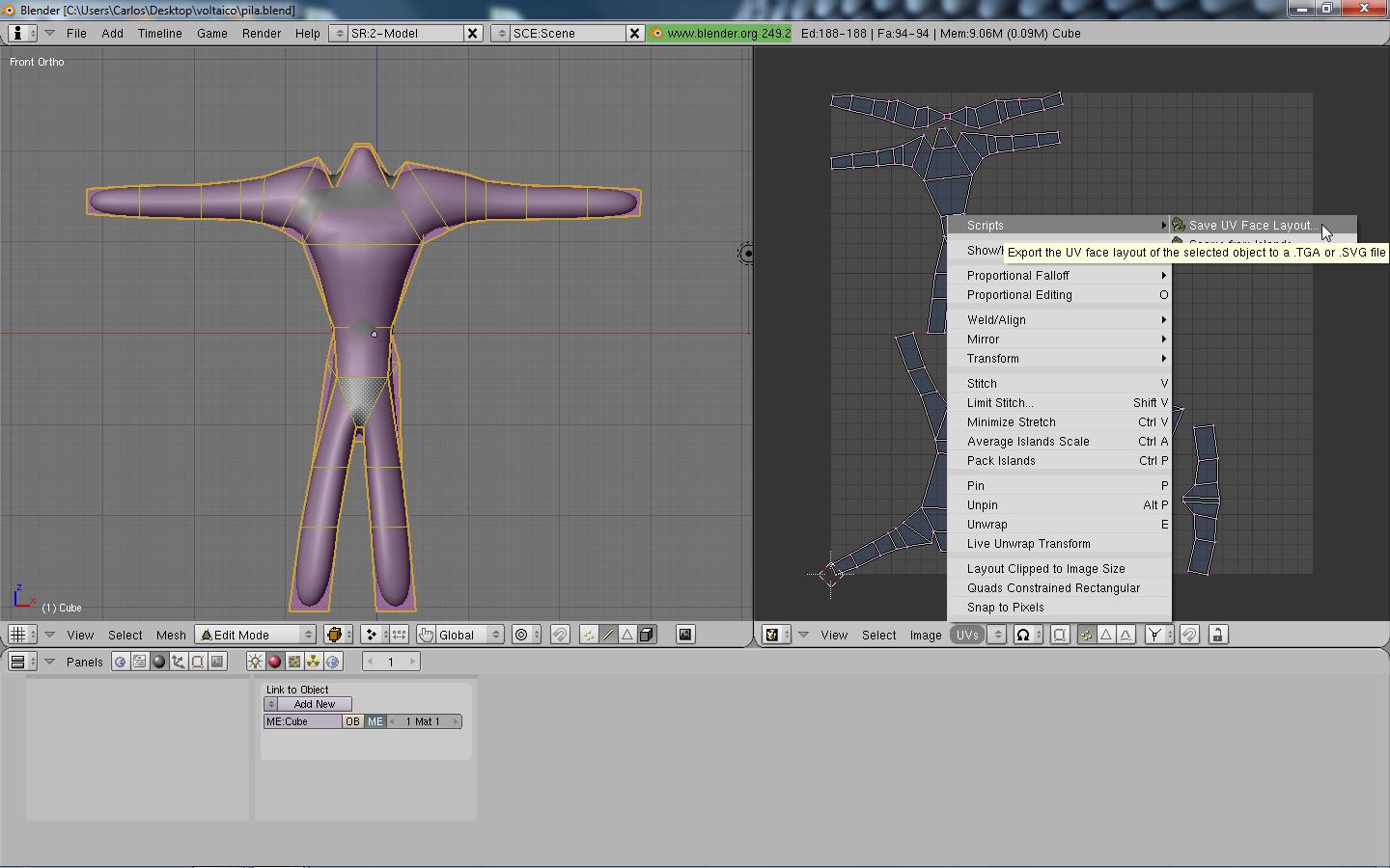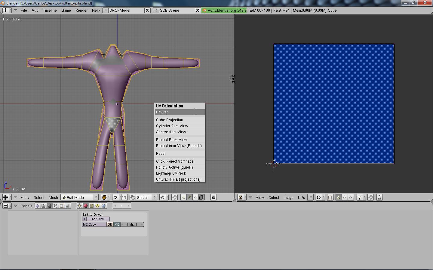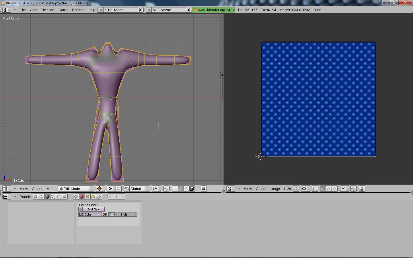 En la ventana UV/Image Editor aparecerá nuestro personaje en retazos justo por dónde le metimos la tijera.