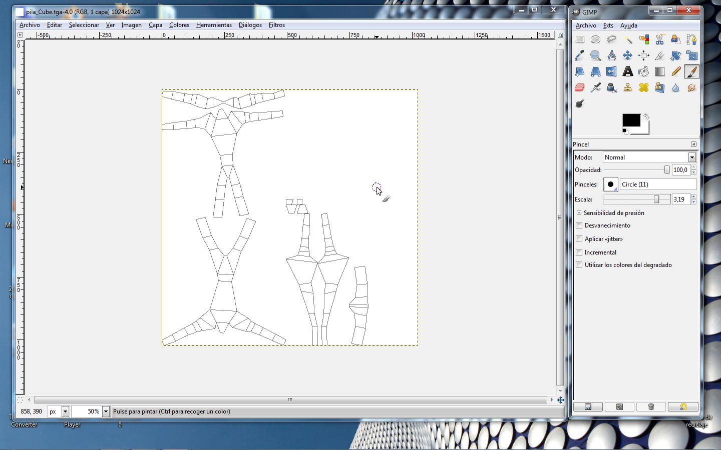 Abrimos la imagen Targa en nuestro editor de imágenes favorito para darle color y textura, en este caso Gimp.