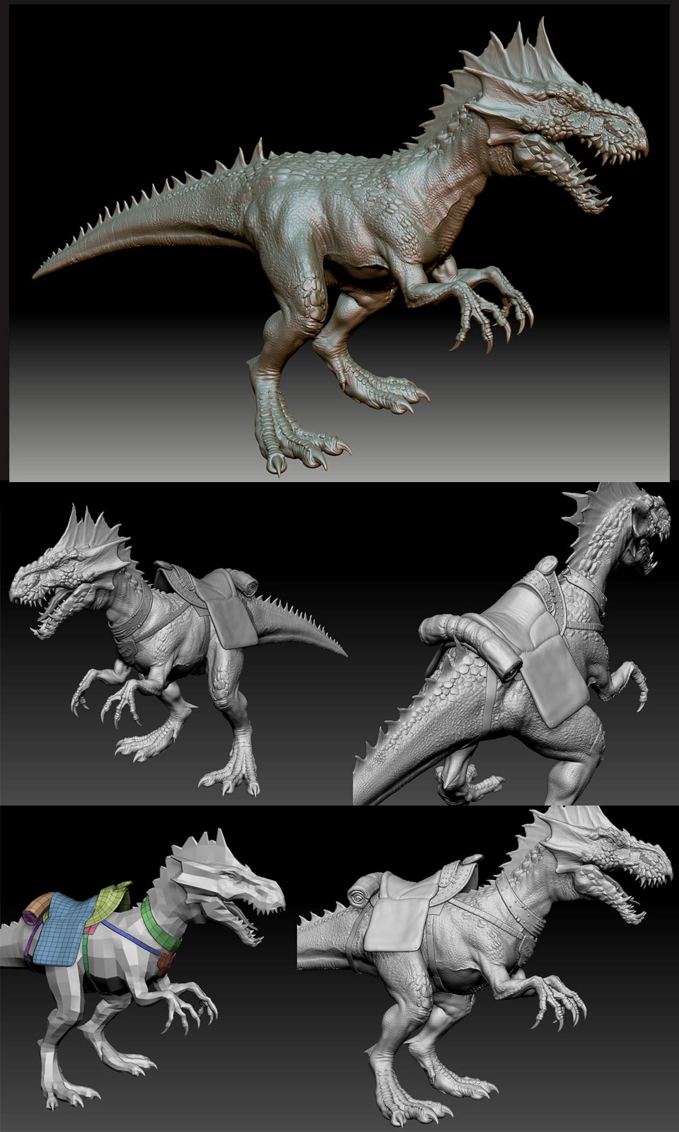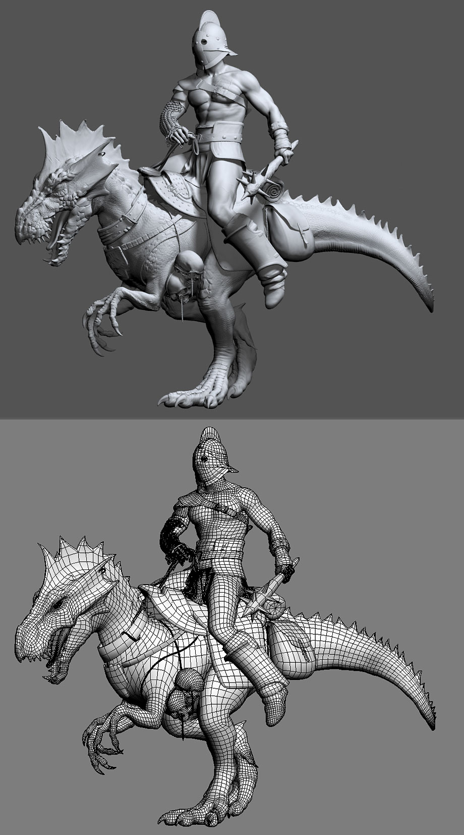 Muy bueno, en especial el dragón, los detalles de la piel y los accesorios, los brazos del guerrero me parecen que están un poco cortos al resto del cuerpo, y quizá mejorar un poco la piel (del guerrero).