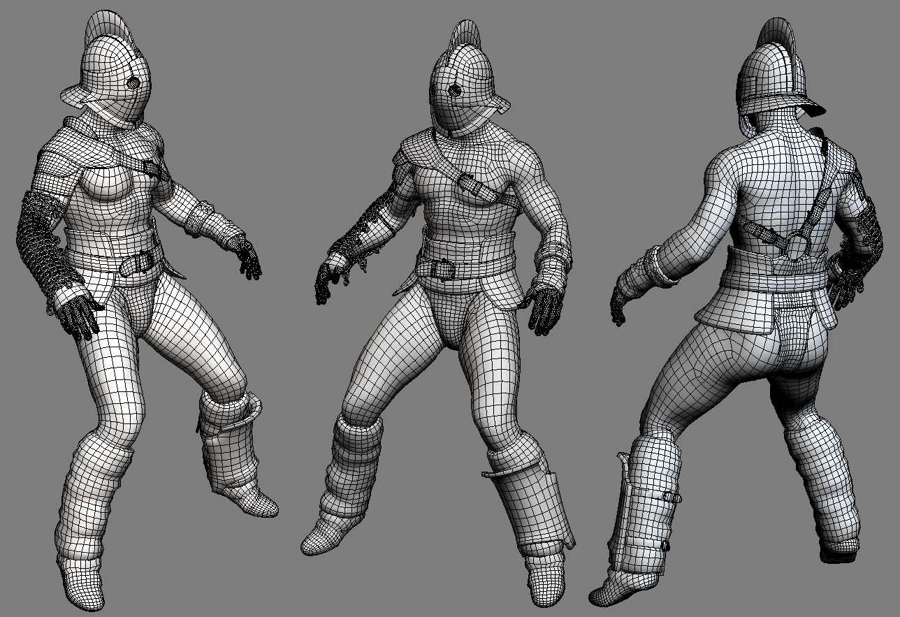 Gracias Superivp, a veces me ayudo del modificador Cloth para adaptar cosas, otras veces también el script max_retopo viene muy bien. Ahora lo único que me da pena es haber hecho la cota de malla con las anillas demasiado grandes, pero con mi PC de 2 gigas de Ram no me tira más, es lo malo de los ordenadores desactualizados, limitan mucho a la hora de añadir más detalles, las texturas en algunos casos me habría gustado poder hacerlas a 4k, pero me petaba el Mudbox a esa resolución.