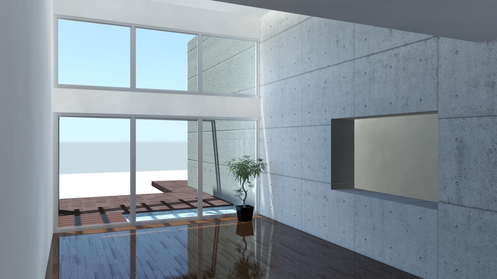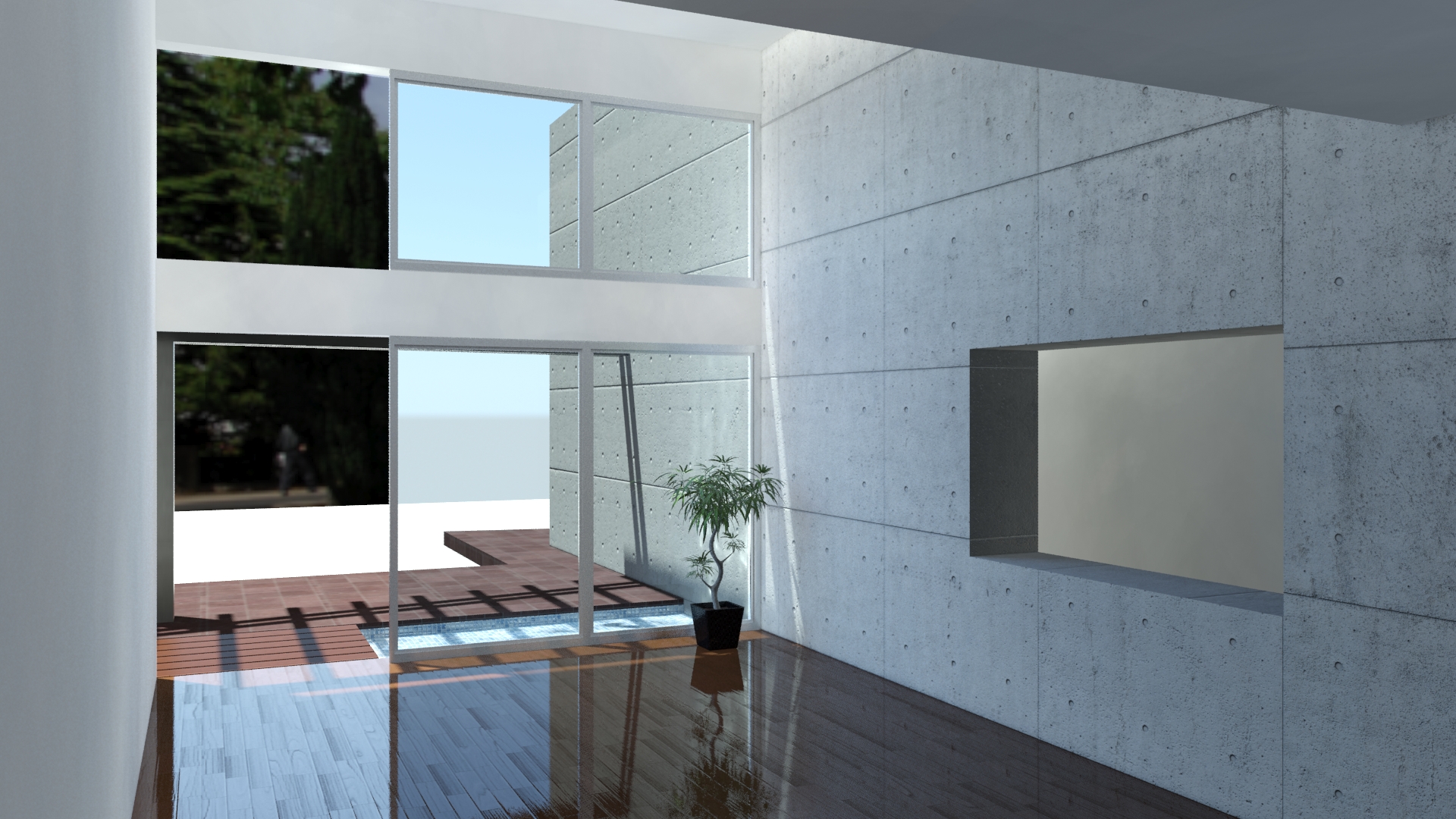 Hola a todos. Estoy trabajando en una escena interior y necesito que, por los vidrios de las ventanas, se vea el exterior.
