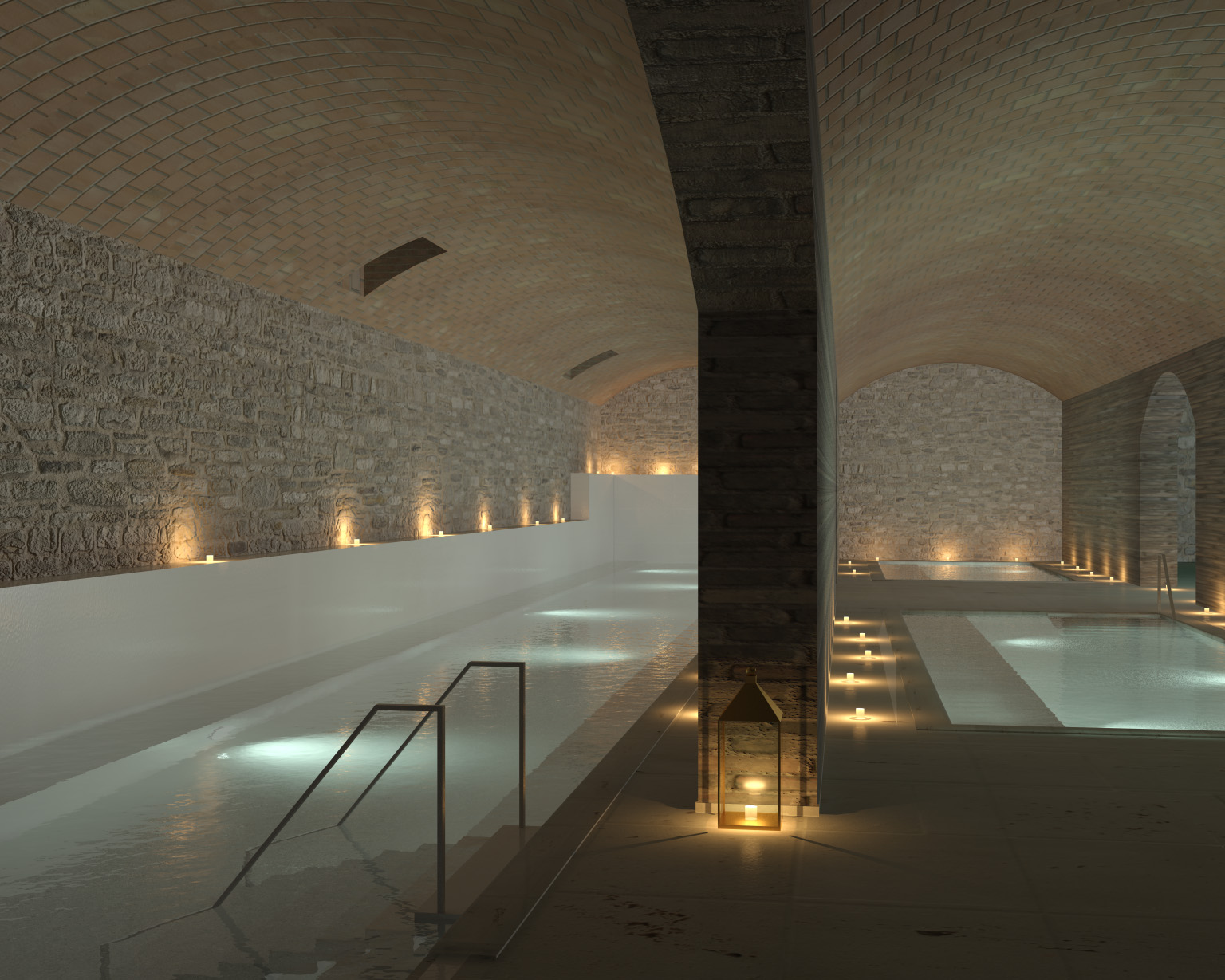 Hola dunabcn, ¿Qué tal? Me gusta tu trabajo, te ha quedado bastante bien las luces proyectadas bajo el agua, así como las restantes. Por comentarte algo, mejoraría las texturas del ladrillo, tanto la de las bóvedas como la de las particiones interiores, y más esta primera partición que queda en primer plano, que es la que mejor definida debe de quedar.