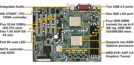 En cuanto a placas base para Opteron lo mejor son las Tyan. Un tío de tienda3d, com que sabía un huevo me comentó que para estaciones de trabajo para 3d lo mejor son las Tyan Thunder-noseké (yo me pillé la k8w, aunque hay una mejor) y las pruebas de tarjetas gráficas y tal las hacen con ordenadores con esas placas. Esto es lo que yo se en mí limitado conocimiento, pero es información fiable.