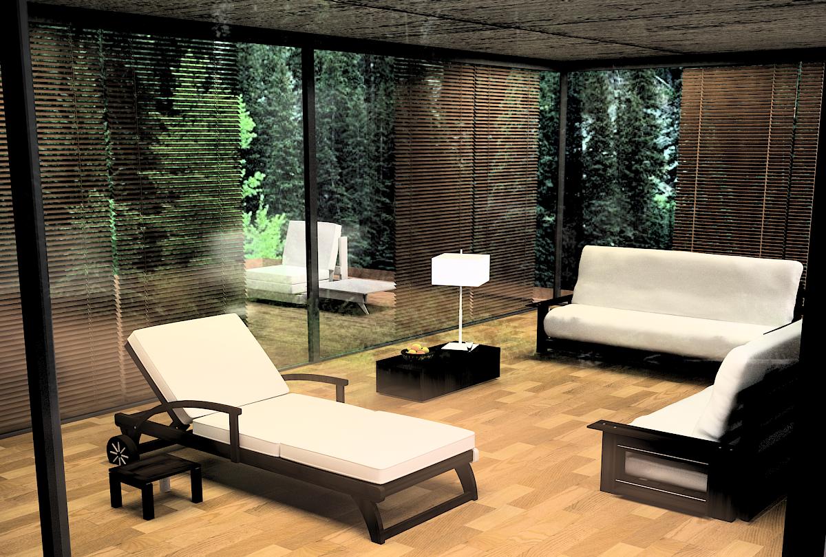 Tu intención de escena es muy buena, pero la iluminación no cuadra del todo, además unas de las ruedas de las tumbonas se mete dentro del suelo y la textura del techo no está bien definida, es solo críticas que yo veo, pero se puede mejorar bastante.
