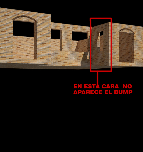 Hola a todos, tengo una duda que me tiene bastante intrigado desde hace tiempo, os la comento a ver si alguien pudiese echarme una mano. Muchas veces al aplicar un Bump, Normal Bump, o Vray displacement me da igual, hay caras del objeto en las que no se aprecia dicho relieve como debería, y he probado a subirle los valores de manera exagerada y nada, en este dibujo os intento explicar mi duda, emos como en la cara frontal del ladrillo se aprecia relieve, y en la cara laterar donde da la sombra no se aprecia el relieve, con muchos suelos me ocurre lo mismo, quedan como lisos, un saludo.