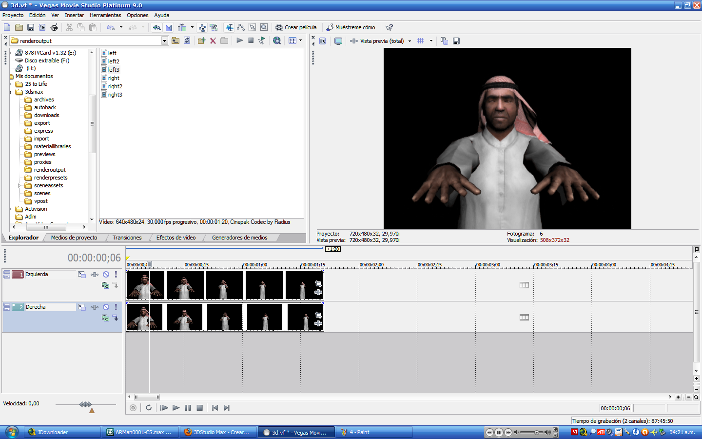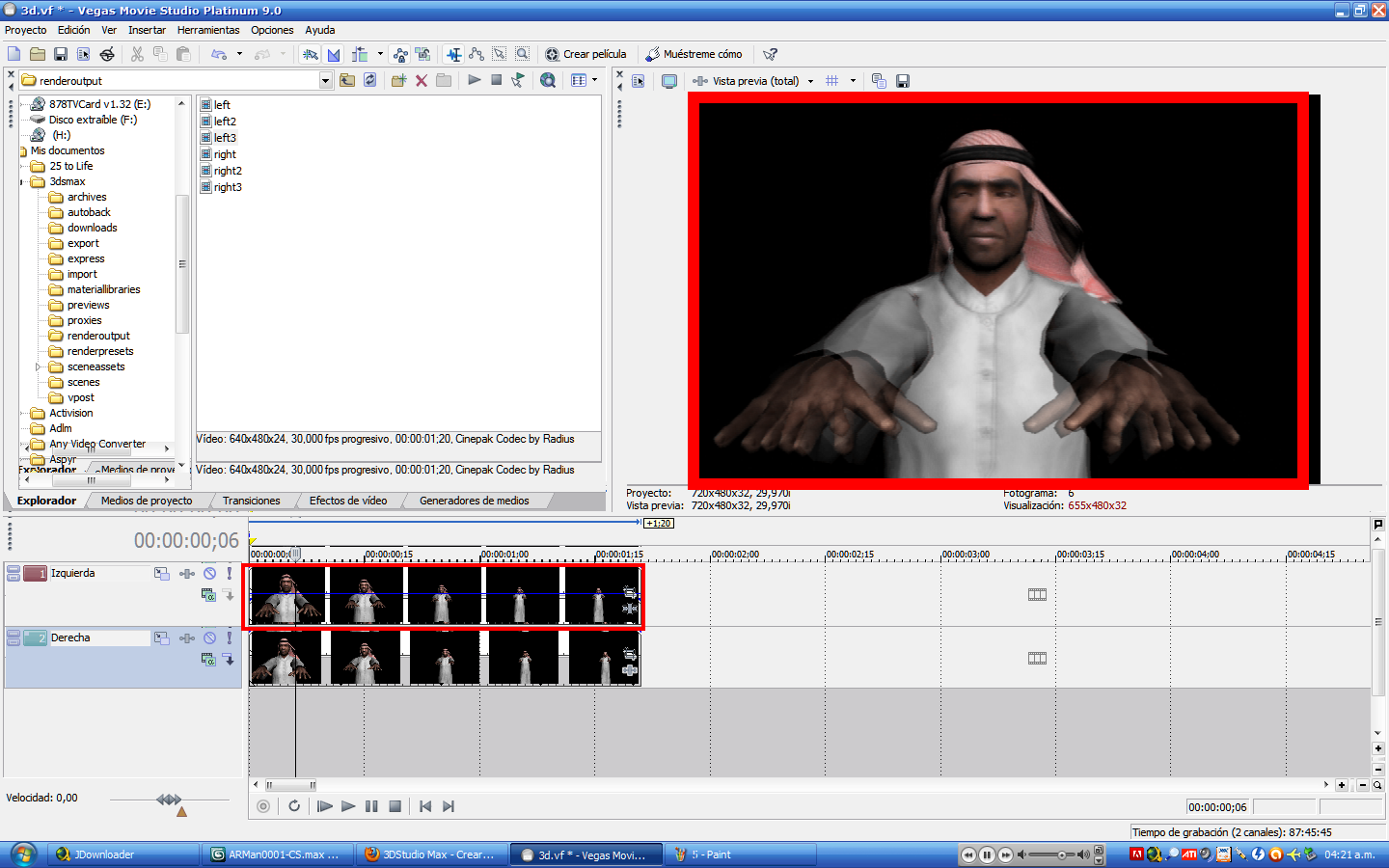Una vez terminado los 2 renders, vamos a nuestro super editor de video para seguir Sony Vegas Platinum 9 -.