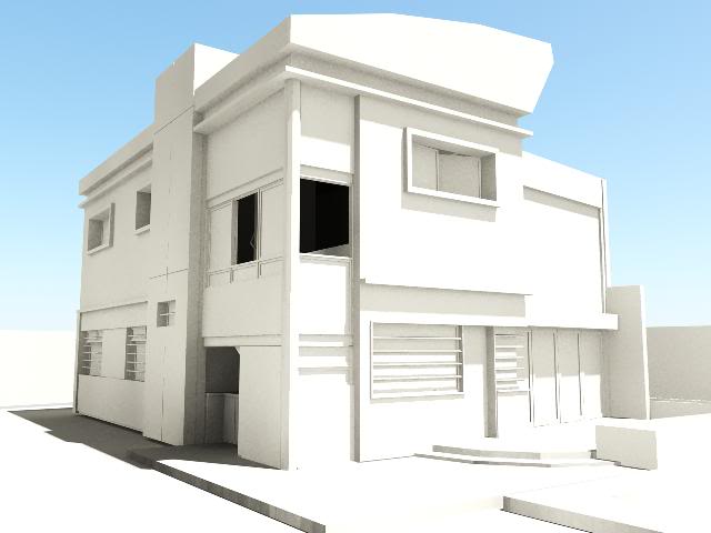Hola amigos. Estoy intentando mi primera escena 3d con iluminación exterior con Mental Ray. Estoy usando un sistema Daylight para iluminar, se te un material base con ambiente oclusión y se te el control de exposición logaritmico.
