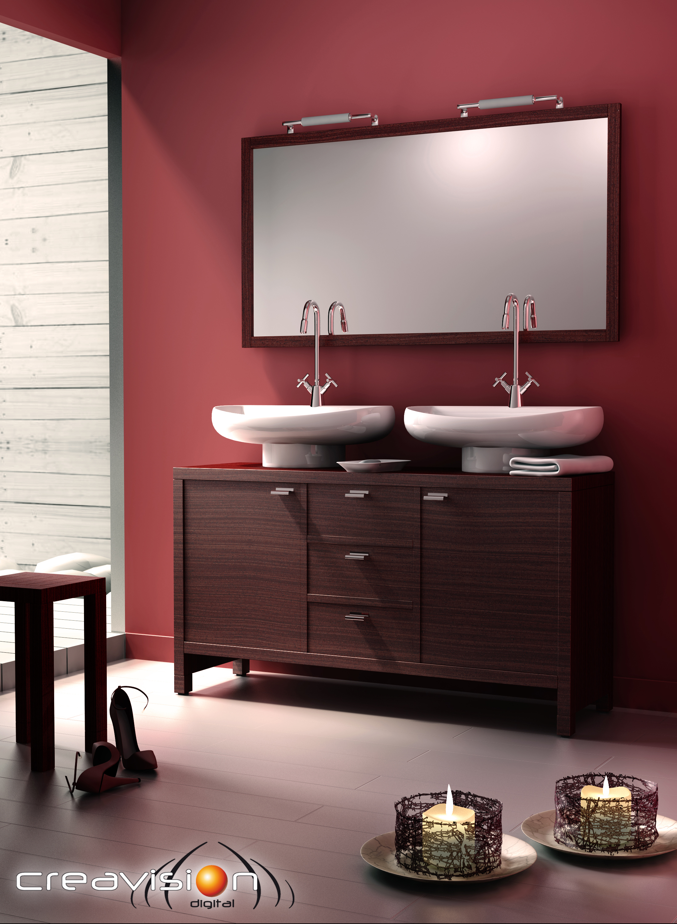 Otro trabajo de interior. Un cuarto de baño copiado de un catálogo de hará. En este caso hecho con LightWave.