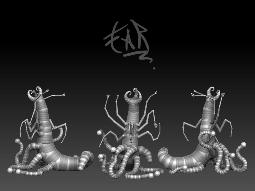 Hola amigos, tenía mucho tiempo sin publicar nada, pero es que, estaba aprendiendo más cosas, como siempre, y ahora ando aprendiendo a usar el ZBrush y ya e echo algunas cosas, particularmente ahora ando modelando una criatura que vi en una imagen, le puse como nombre gusano alien porqué bueno, es lo más cecano a lo que parece, espero que les guste cómo va quedando. Aún me falta detallarlo un poco más para que se vea mejor y después darle color.