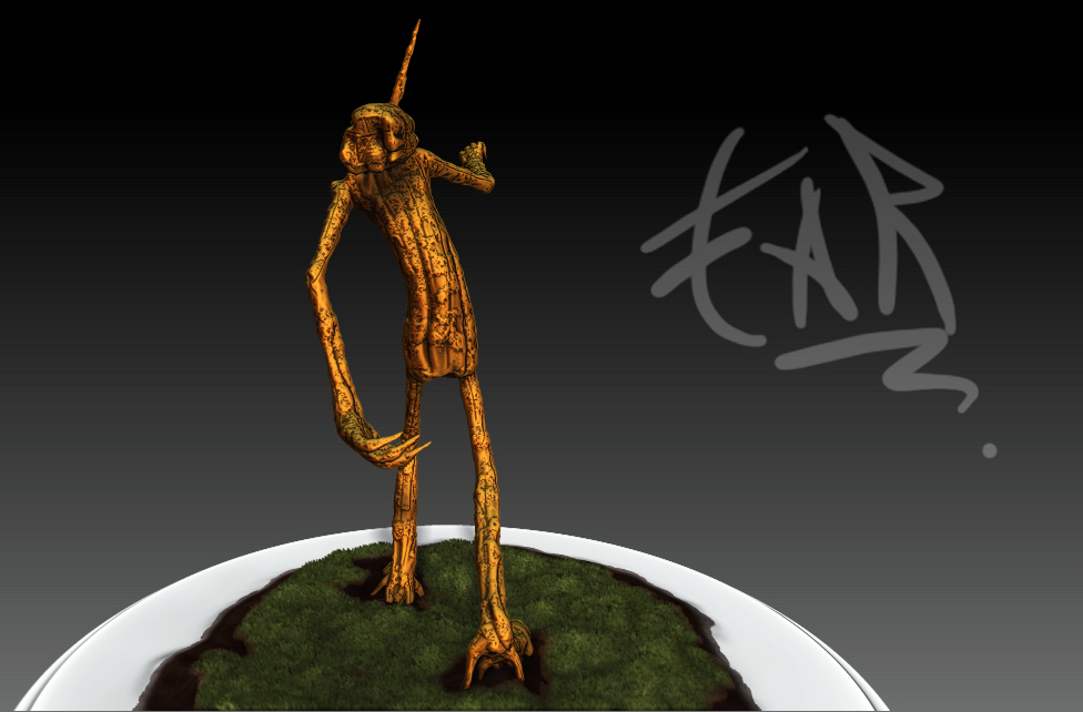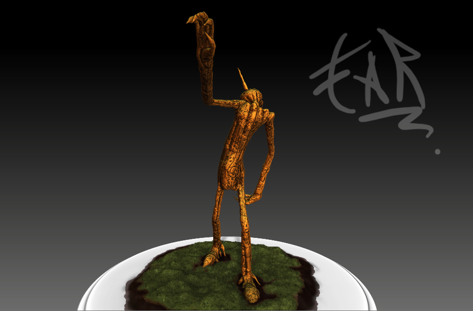 Bueno amigos, aquí está el desenlace de pinocho. Yo no sabía que saldría de todo esto hasta que lo vi terminado y me gustó ya que lo que expresa el modelo me gusta. Trate de darle un giro diferente al pinocho normal, en este caso vemos a un personaje de madera que quiso escapar de su destino y que no pudo hacerlo, pero aun así lo intento hasta dónde más pudo, por eso vemos como en sus pies se notan las raíces que se desprendían al tratar de escapar de la tierra donde estaba arraigado ya, la verdad me gustó mucho este personaje ya que a pesar de ser sencillo es atractivo a la vez.