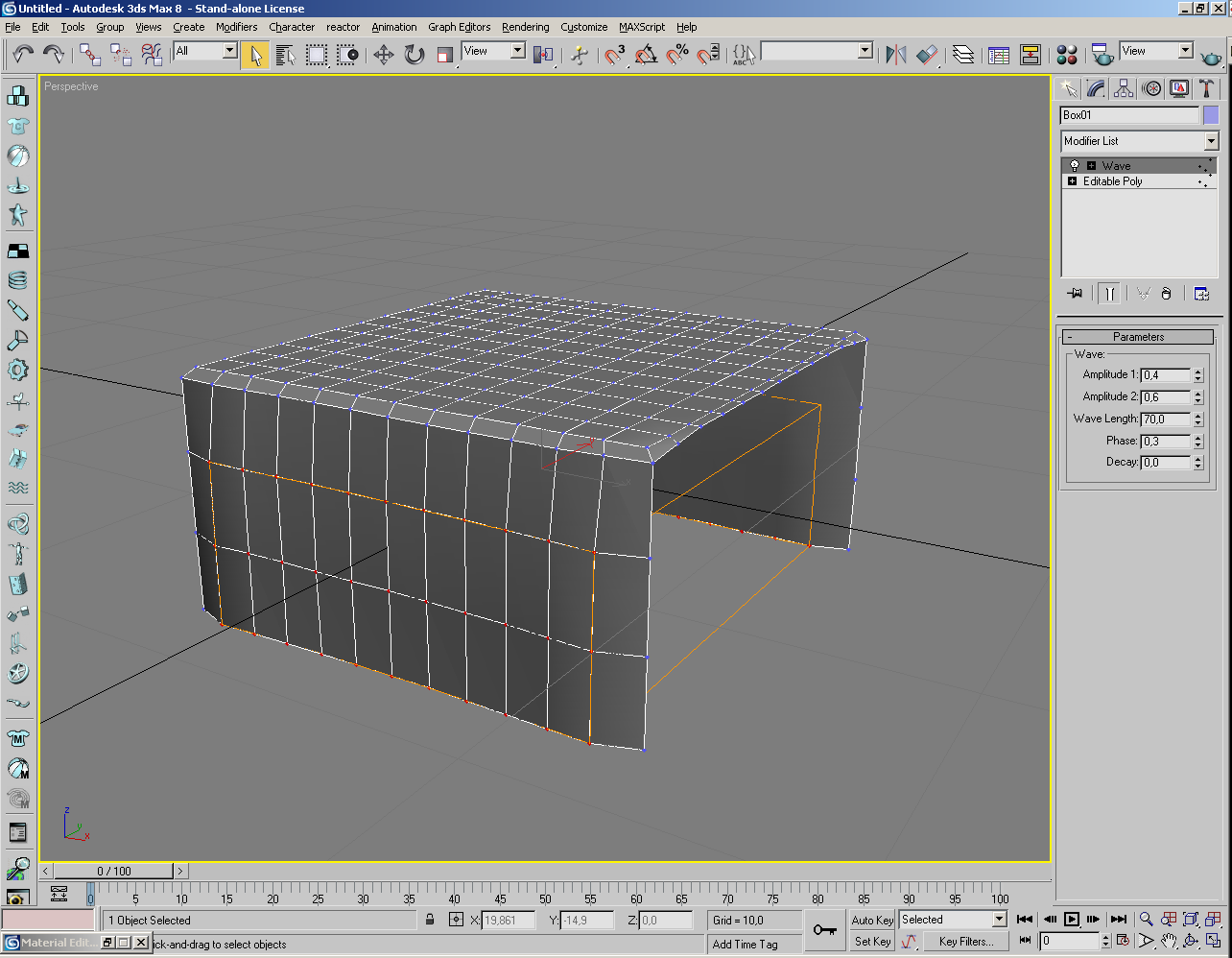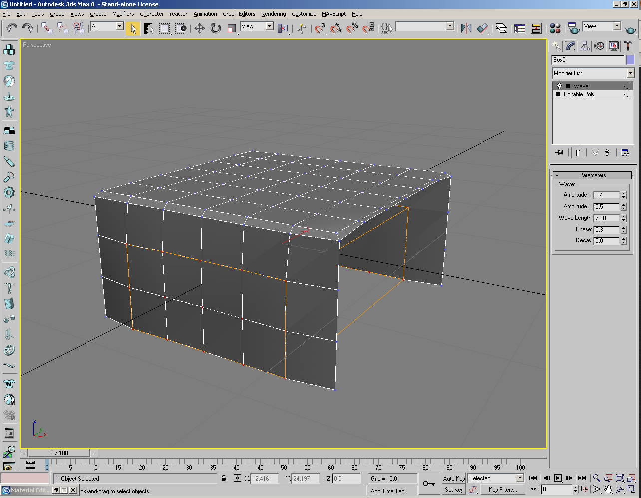 Juega con los valores de amplitude 1, amplitude 2, wave length y phase hasta lograr una ondulación adecuada, también puedes subdividir la malla para obtener un ondlado más suave.