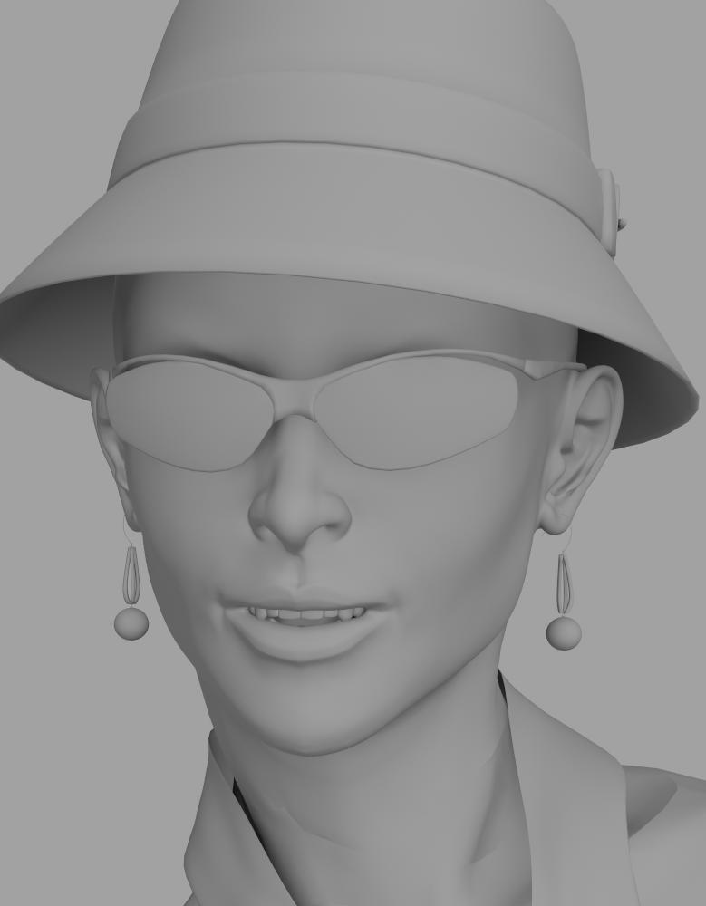 Yo lo veo muy cercano el render, pero me recuerda a haudrey herburn o cómo se diga. Esos dientes sobran y la montura de las gafas falta suavizar más, por cierto, tu cristal es satinado. Pero mola el conjunto.