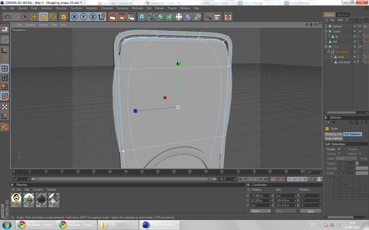 Hola. Mi problema es el siguiente: Estoy haciendo un tutorial de Cinema que consiste en modelar un mp3 pero al llegar a la parte de hacer la pantalla del objeto en el video modifica la posición de los vértices de los polígonos (hacia arriba y laterales) sin que se le deforme el objeto, pero cuando yo quiero hacerlos polígonos se me rompen, se arrugan al acercar los vértices. Aquí les dejo una captura de mi pantalla para que puedan visualizar que es lo que me pasa.