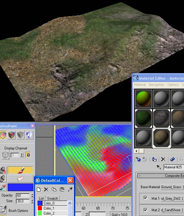 1-poner en el material editor 3 materiales, por ejemplo, un ground_grass, un ground_grey_dirt y un ground_sandshore.