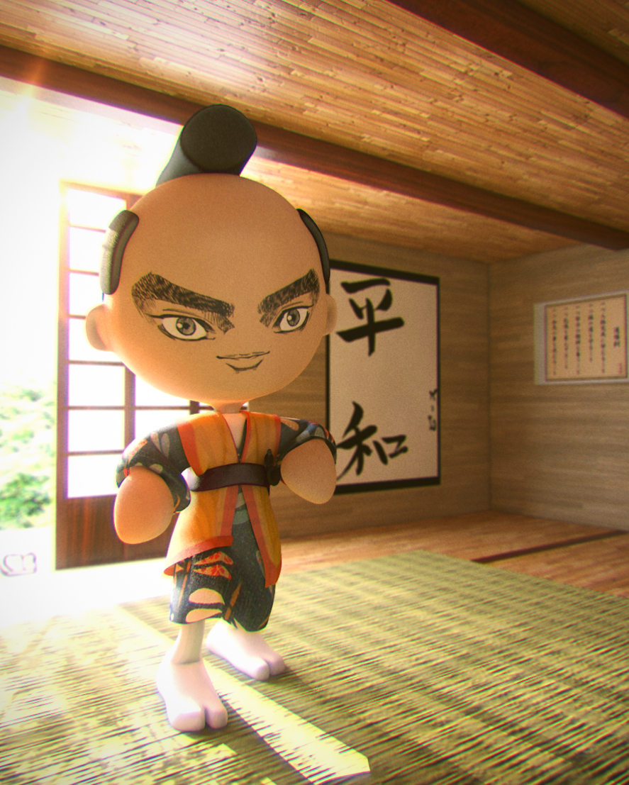 Una escena cartoon en la que me ha llevado más tiempo crear el entorno que el modelado/texturizado y rigging del personaje. Dudaba entre hacer un exterior o un interior y después de muchas pruebas y pelearme con los proxys de Final Render, decidí crear un interior sencillo.