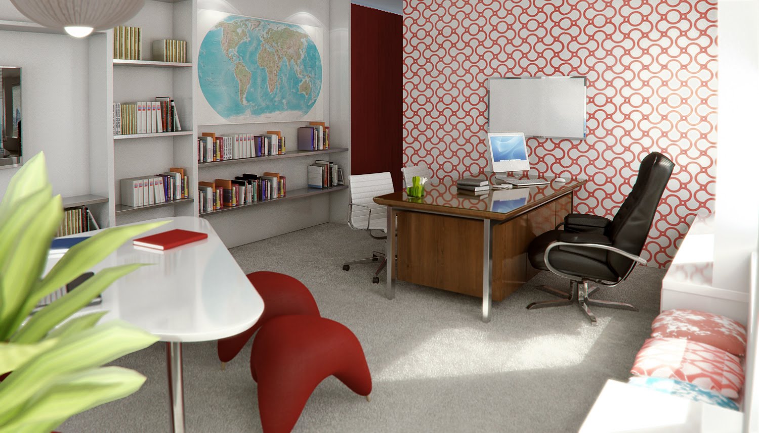 Un interior oficina particular tres cámaras, modelado 3dsMax render Vray, mensaje Photoshop.