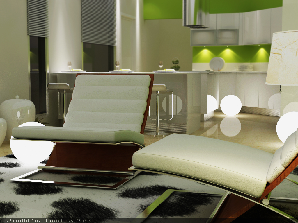 Hola, antes que nada tiene muy buena pinta el render, sin duda, algunas cosas que he visto. El Bump del sillón no me convence mucho, me parece que es muy áspero, muy fuerte, le caería muy bien a los cojines un fallof en la reflexión para que en el fondo haga un pequeño reborde de luz, por lo demás lo veo muy bien, que tipos de luz has aplicado? En que motor de render lo has hecho?