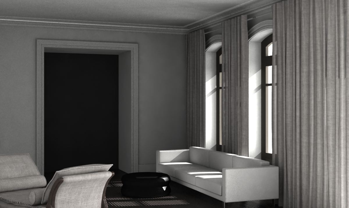 Luego, la luz, que pasa con ella? De dónde viene y por que viene desde allí? Por ejemplo, en el piso se ven luces que provienen de una ventana con una persiana americana o similar, pero están muy pegadas a las de las ventanas que se ven en escena, cálculo que serán otra fuente de luz, pero en esta situación, eso hace ruido, dónde está esa fuente de luz? Como se la cuento a mi espectador/cliente? Otro tanto con el negro casi pleno de la habitación contigua, no hay demasiado espacio sin información por allí? Que me está contando eso? Vale la pena mostrarlo? O puedo poner una puerta, o algo similar para que no moleste ese bodok oscuro?