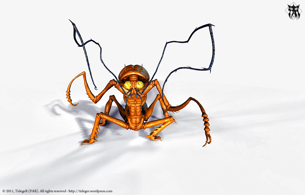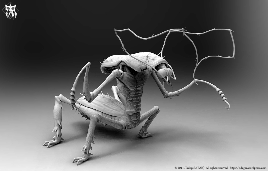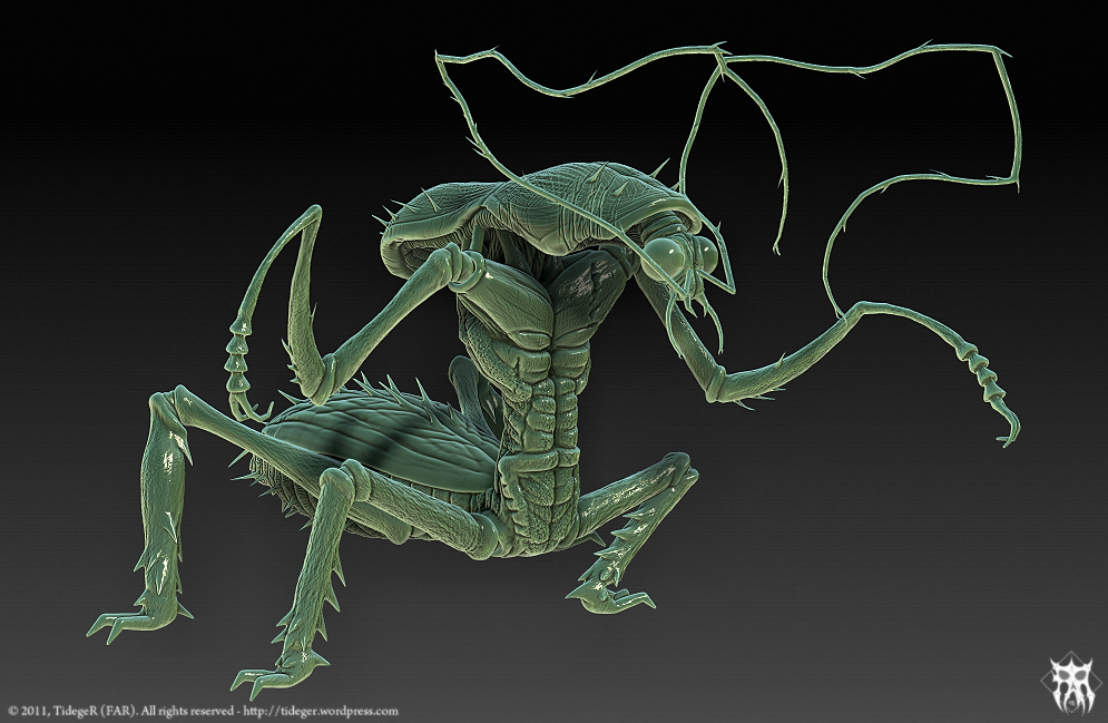Hola amigo, como vas? Espero que bien. Con respecto a la criatura, es como si una Mantis se hubiera apareado con una cucaracha y este hubiera sido su primogenito, el orguyo de la familia.