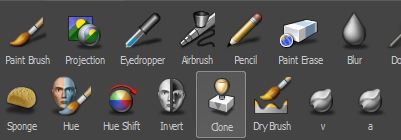 El pincel perdido (era el de clonar) tampoco logre traerlo de vuelta. (si ven en la imagen un pincel de clonar es porque renombre uno de los nuevos).
