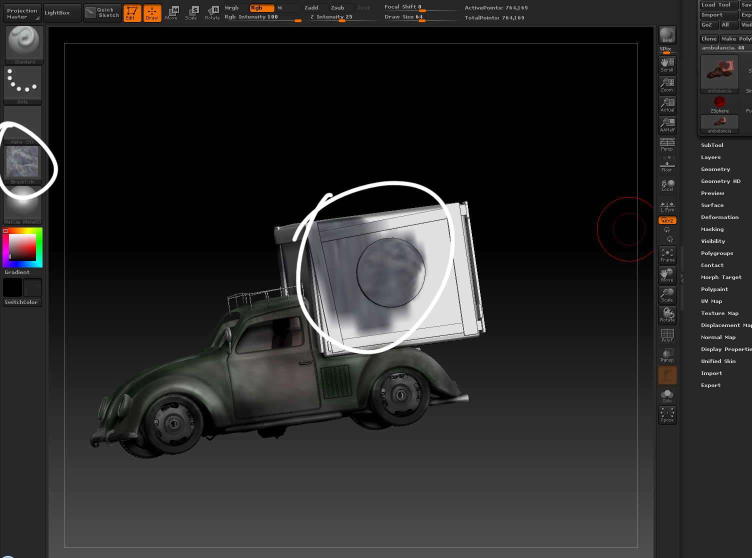 En ZBrush pongo las sdiv a 1 o a 3 y elijo polypaint- Colorize.