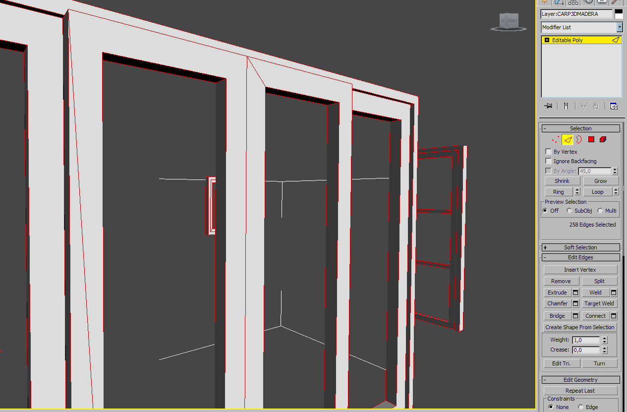 Bueno quitando la visualización de los ejes Edges Faces, no se ven, pero están seleccionados igualmente, y cuando queremos hacer un chaflán, los hace a todos igualmente, el es quitarlos de la selección, si está modelado con max no hay problema, en cambio cuando el objeto está hecho en AutoCAD, una cara me la divide en triángulos.